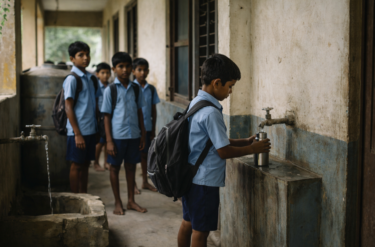 In many schools, there is no purifier just an old tap or tank that may not be safe. Access to clean water should never depend on how much you earn.